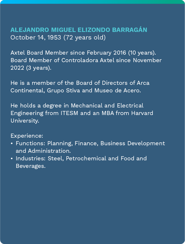 To fulfill its duties, the Board of Directors is supported by the Audit and Corporate Practices Committee, which is integrated by Alejandro Elizondo Barragán, Juan Ignacio Garza Herrera and Ricardo Saldívar Escajadillo as proprietary members. During the General Shareholders’ Meeting on March 8, 2024, Mr. Alejandro Elizondo Barragán was confirmed as the chairman of this committee.